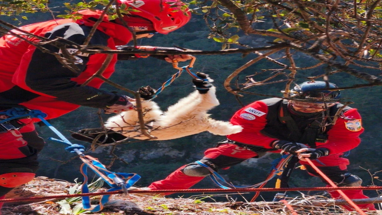 Mersin’in Erdemli ilçesinde uçurumdan düşen kuzu kurtarma ekiplerinin çalışmasıyla bulunduğu yerden alınarak sahibine teslim edildi.
