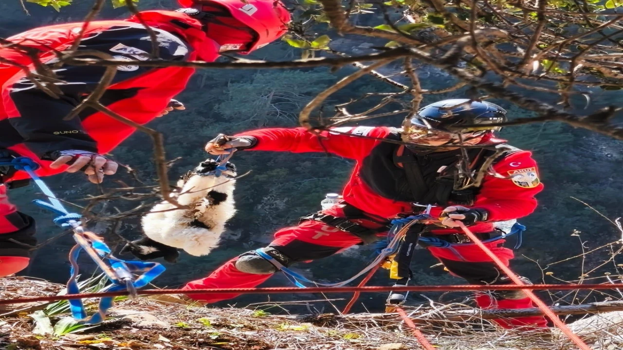 Uçurumdan düşen kuzuyu ekipler kurtardı