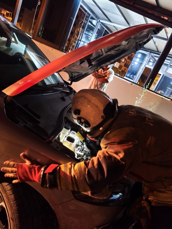 HATAY'DA SOĞUK HAVADA ARACIN MOTORUNA SIĞINAN YAVRU KEDİ, İTFAİYE EKİPLERİNİ VE ARAÇ SAHİBİNİ DAKİKALARCA UĞRAŞTIRDIKTAN SONRA KENDİLİĞİNDEN ÇIKTI.